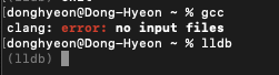 위와 같이 clang: error: no input files가 뜨거나 (11db)가 나오면 컴파일러, 디버거가 설치되어 있는 것이다.