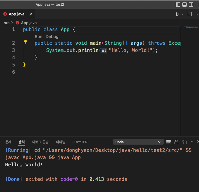 이렇게 하면 VS Code에서 Java를 돌릴 준비는 끝났다.