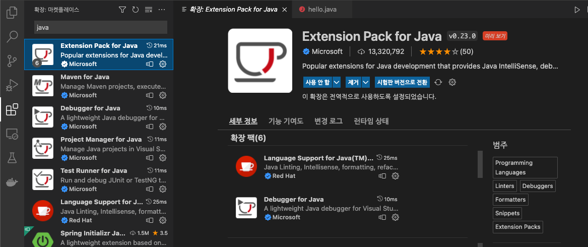 (3) java extension 설치