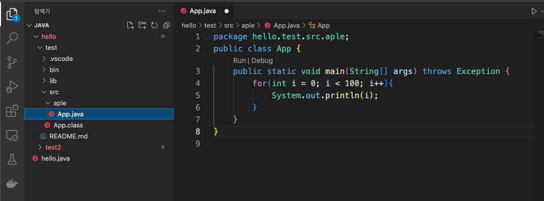 아래에서는 VS Code로 자바 개발환경을 세팅하고 클래스를 만드는 것 까지 해볼 것이다.