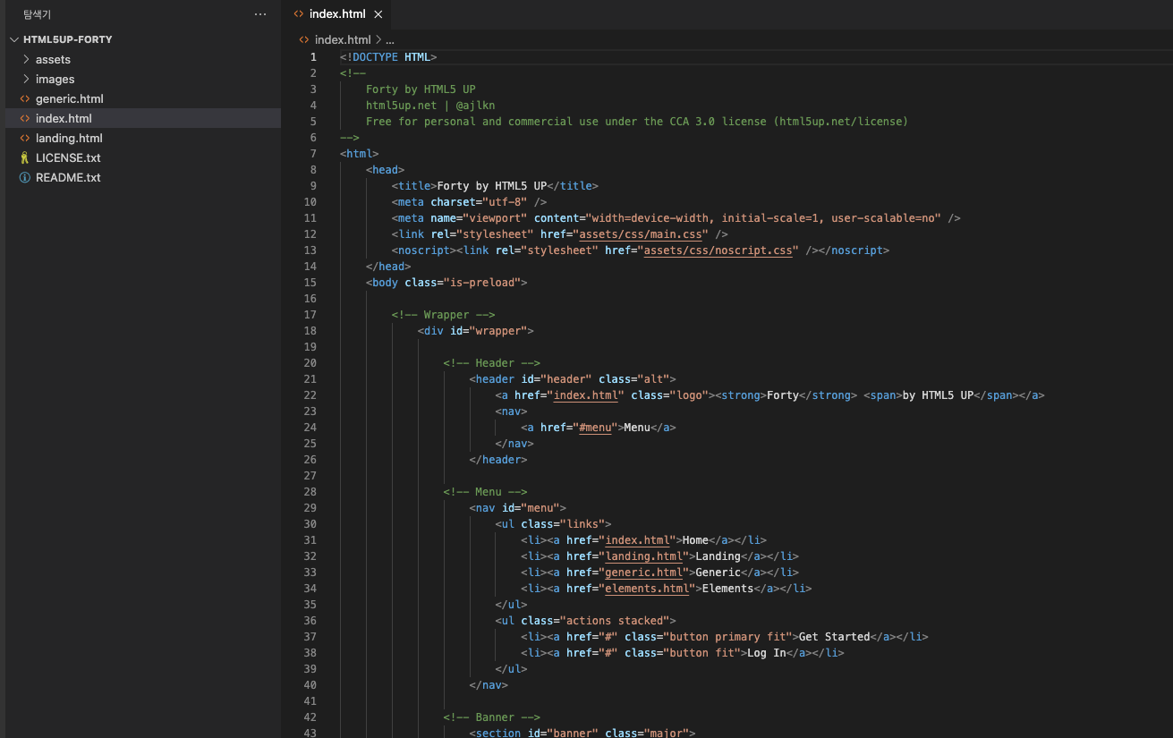 나는 Forty라는 템플릿을 가지고 페이지를 만들어보았다.