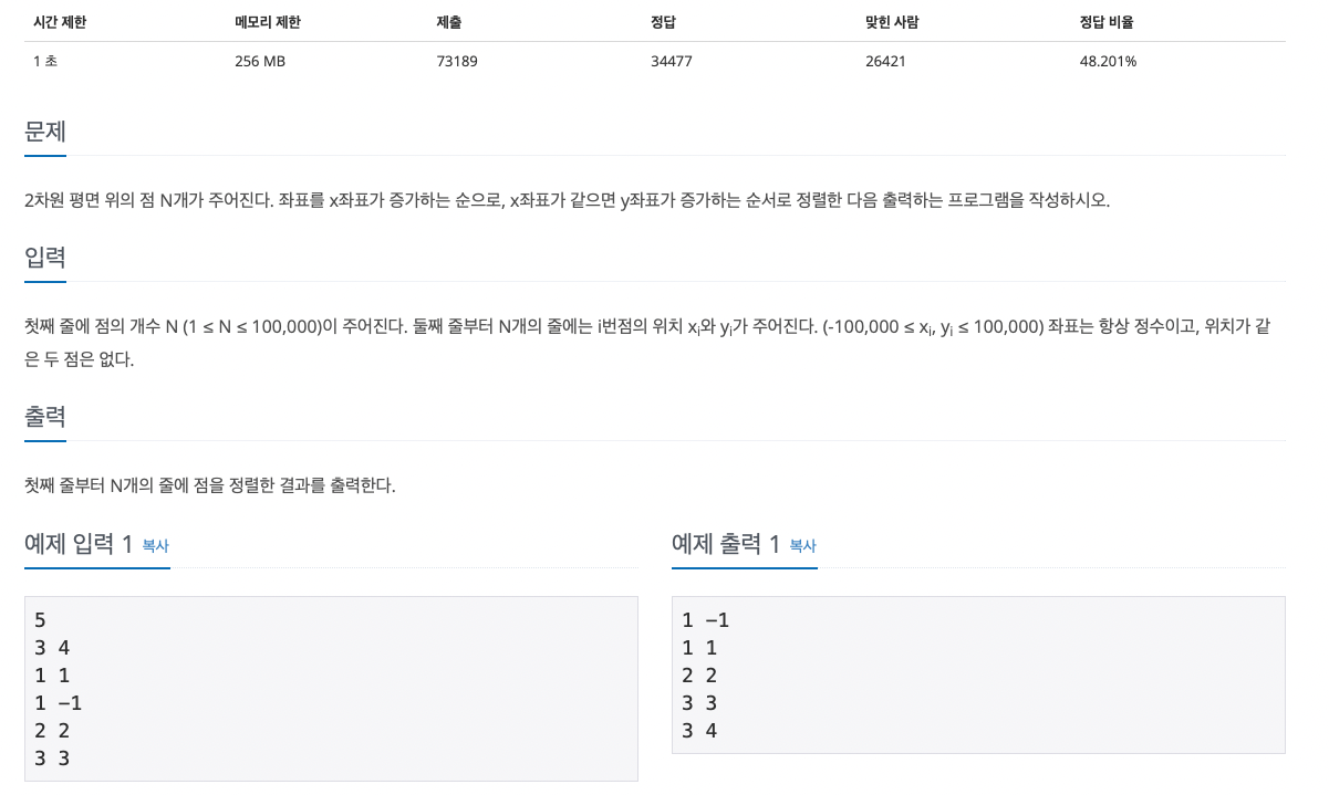+ 백준 11651은 이거 풀면 덤으로 줘요!