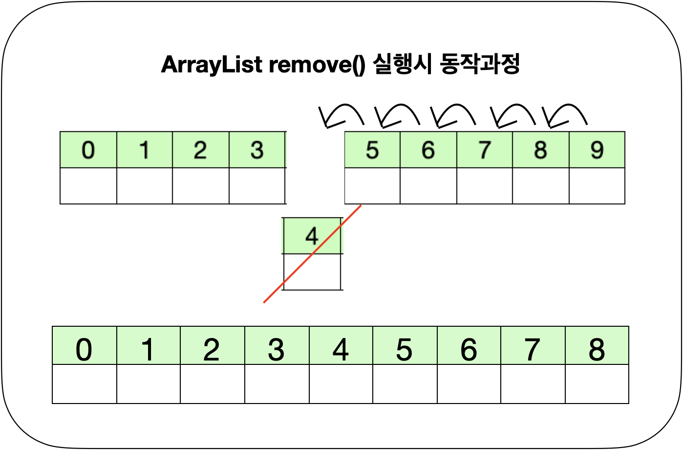 이렇게 되는 경우, 첫 인덱스인 0을 삭제할 때, ArrayList의 size만큼 연산을 필요로 한다.