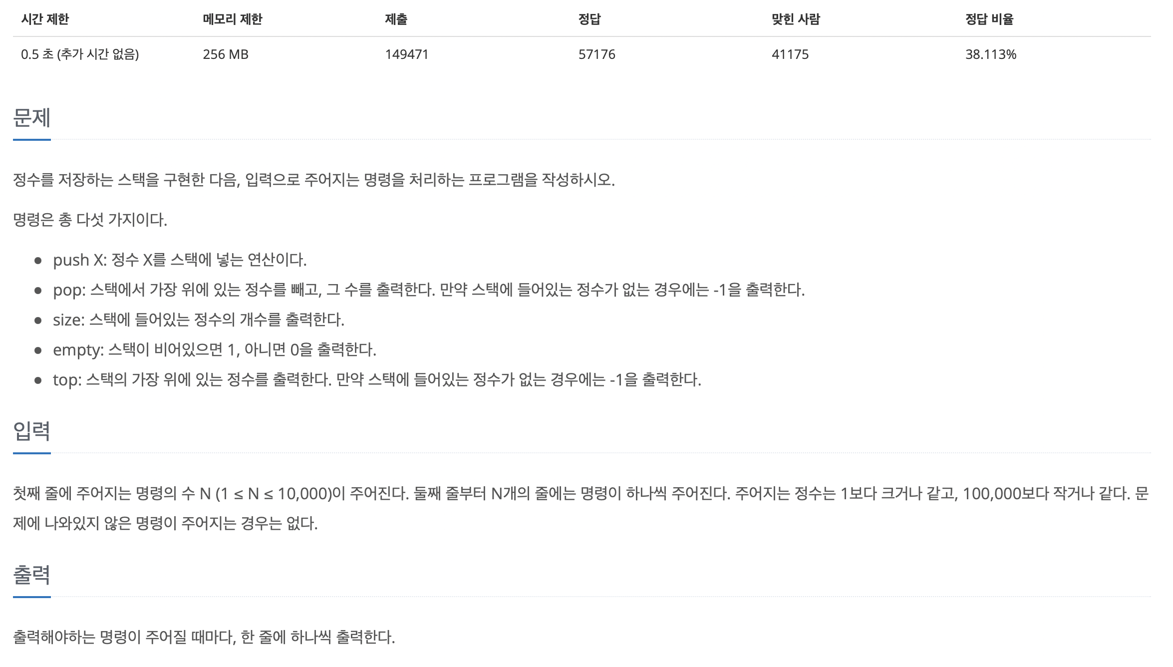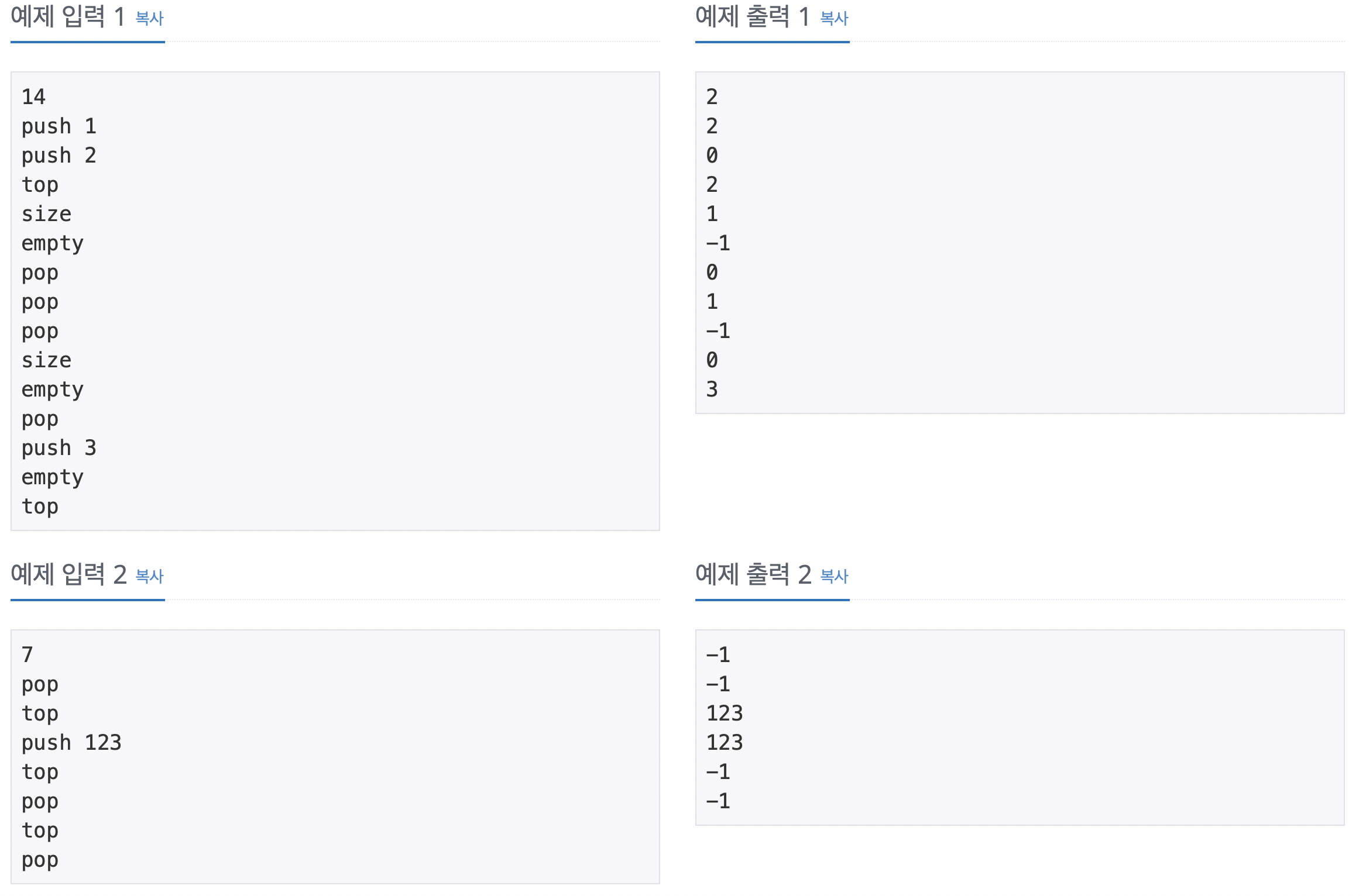 본 문제는 백준의 큐, 덱과 더불어 자료구조 문제의 기본 문제라고 할 수 있다.