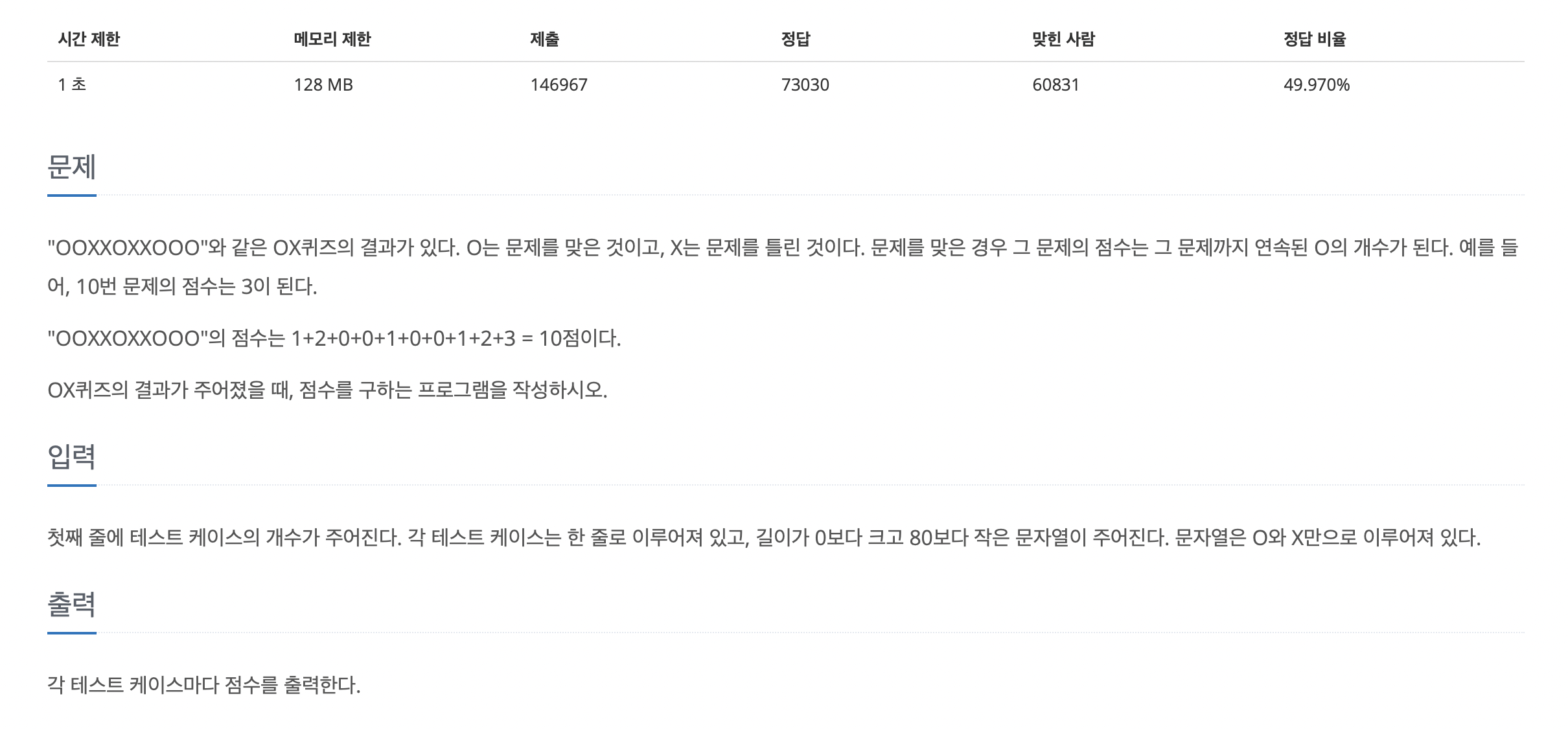 'O'만을 세면 되었기 때문에 'X'를 기준으로 해서 글자를 잘라 ox_list를 만들었다.