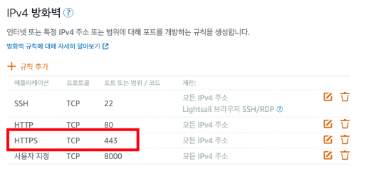 애플리케이션은 HTTPS이고, 443 포트를 넣어서 규칙을 추가해준다.