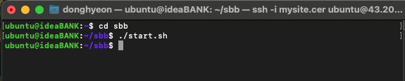 나같은 경우에는 프로젝트 디렉토리 이름이 sbb라서 친 것이고, 여러분의 프로젝트 디렉터리 명을 치고 그 곳으로 들어간 다음 실행 스크립트를 입력해주면 된다.