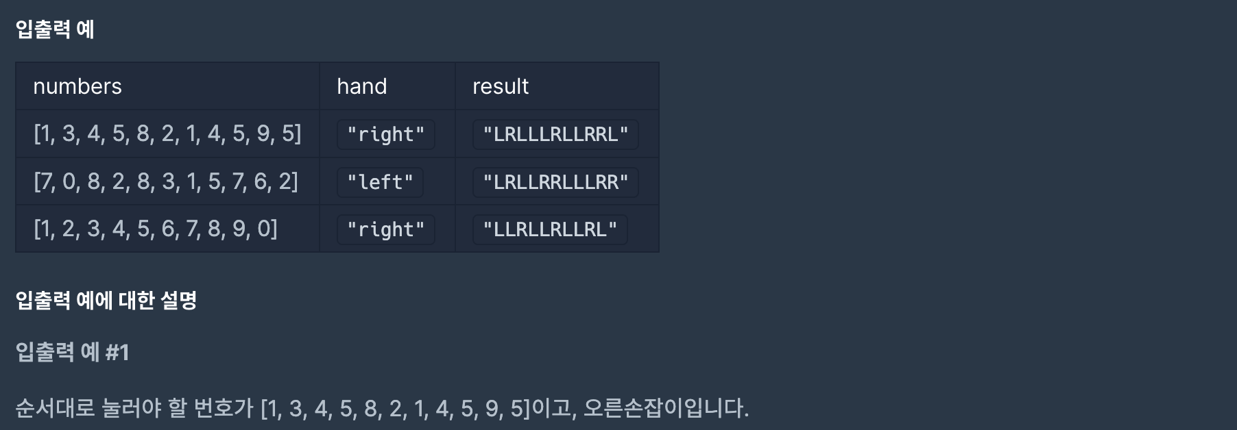 문제를 잘 읽어보면 왼쪽의 1, 4, 7은 왼손으로, 오른쪽의 3, 6, 9는 오른손으로 필히 누르게 되어 있다.