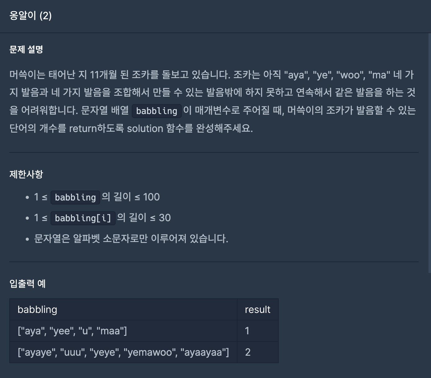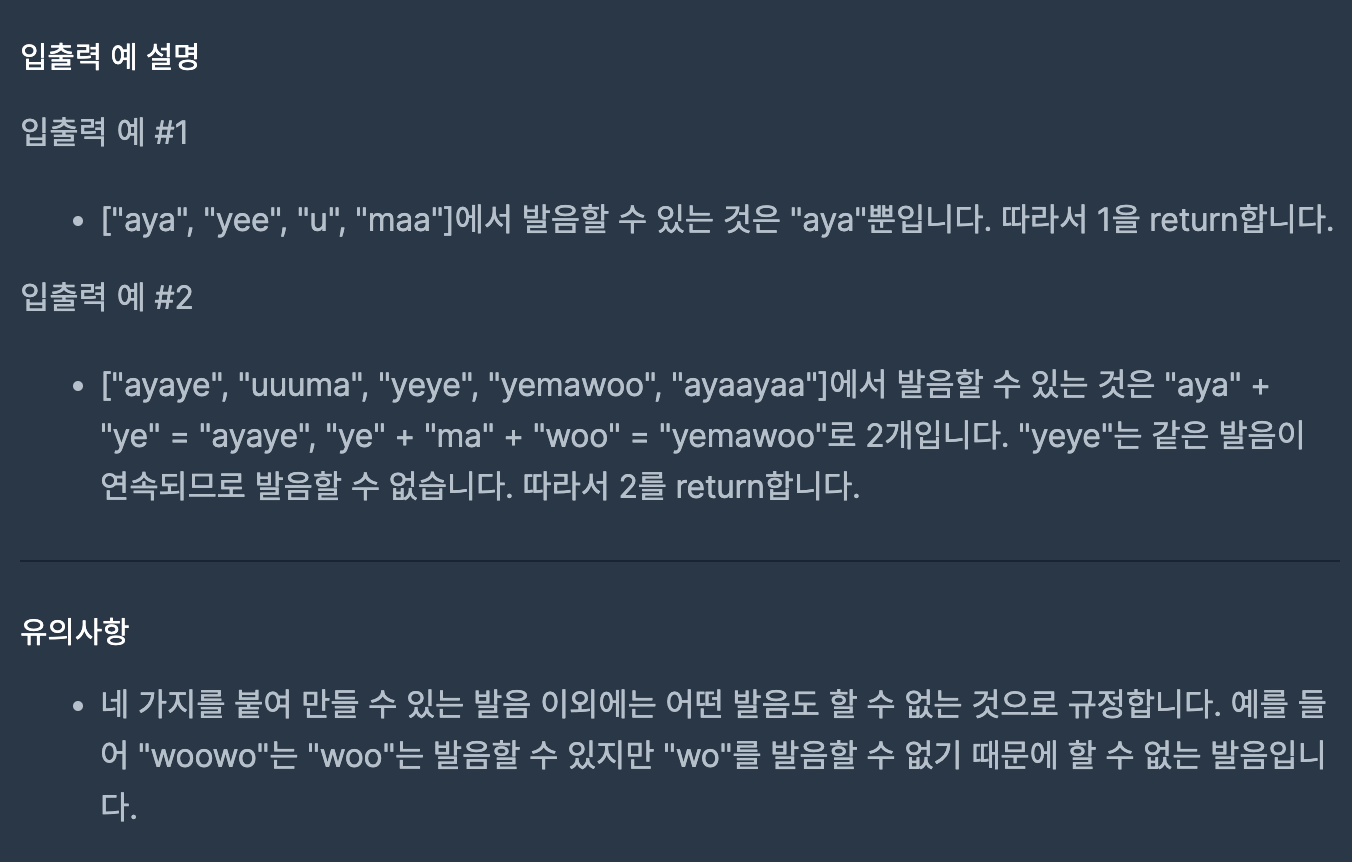 [Swift] 프로그래머스 옹알이 (2)(lv. 1)