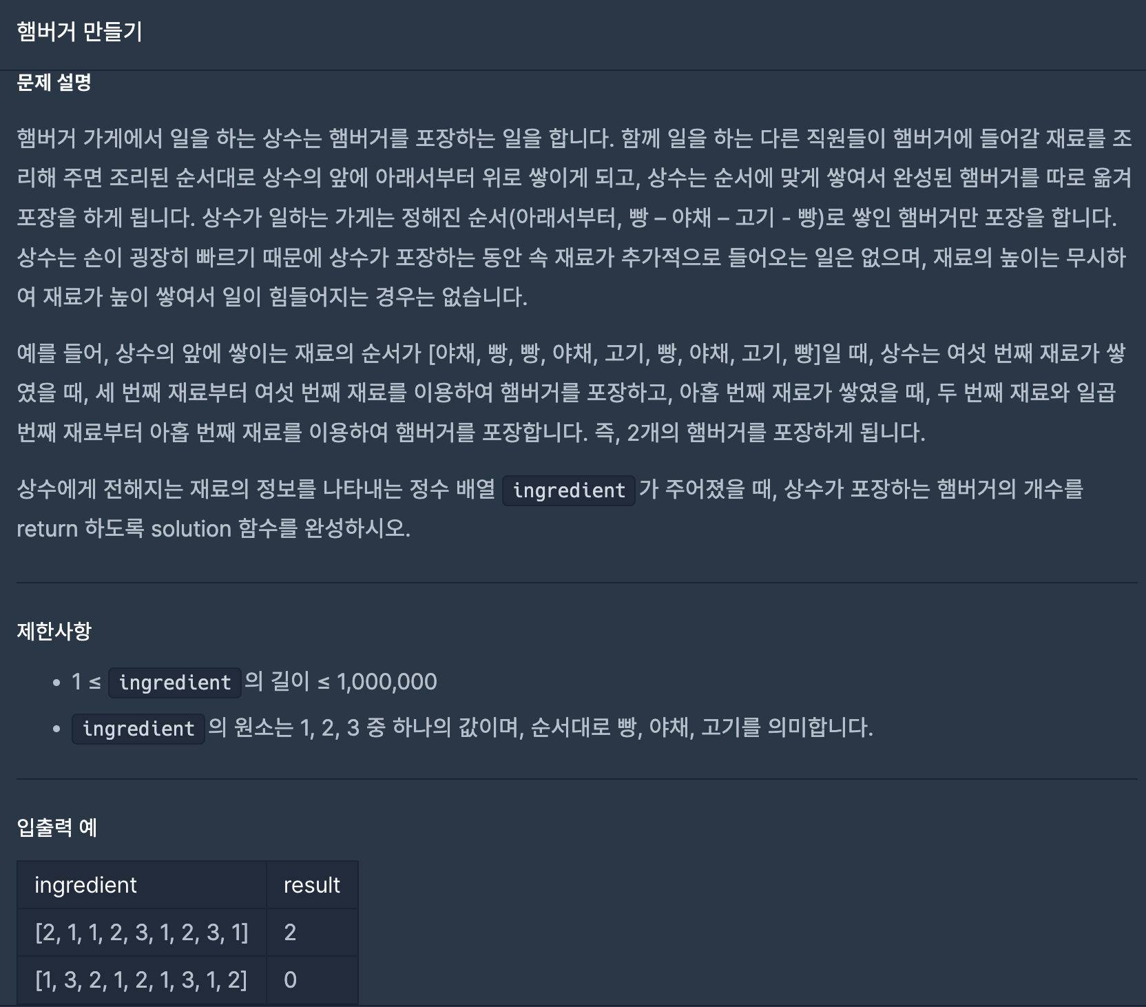 [Swift] 프로그래머스 햄버거 만들기(lv. 1)