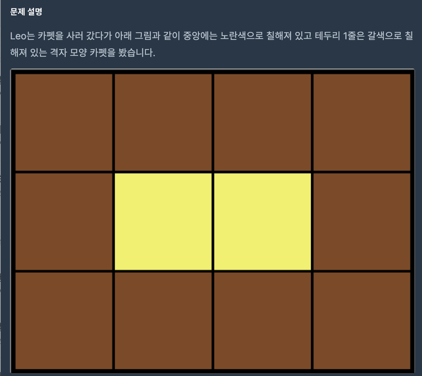 중앙에는 노란색으로 칠해져있고, 테두리는 갈색인 카펫이라고 했다.