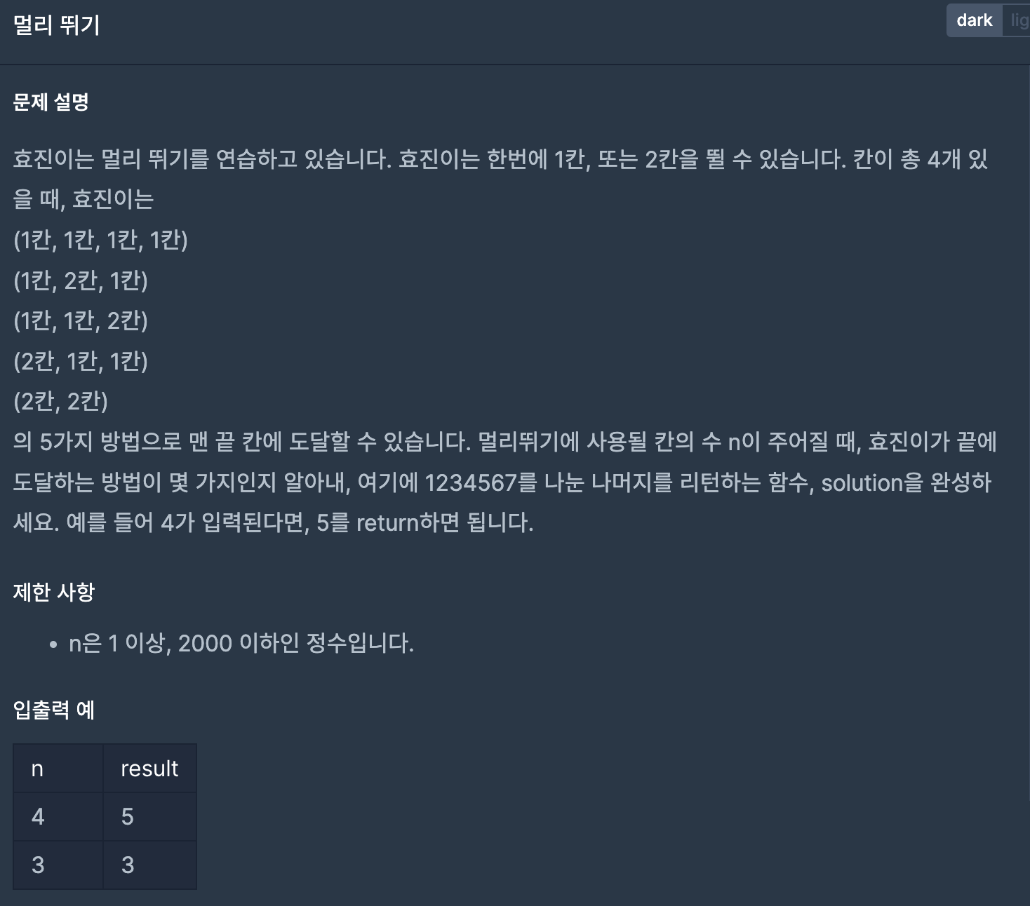 맨 앞에 1만 붙이면 피보나치 수열인가...? 1234567로 나누라고 한 것도 이것과 연관이 있는 것 같았다.