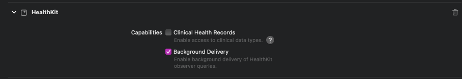 해당 코드는 HealthKit과의 상호작용을 위해 앱의 백그라운드에서 데이터 업데이트를 수행하도록 구현되어 있습니다. 기본적으로 HealthKit은 백그라운드 업데이트를 지원하고 있어, 앱이 백그라운드로 들어갈 때마다 업데이트를 수행할 수 있습니다.
