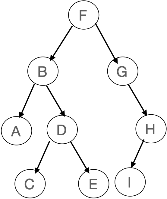 inorder : A -> B -> C -> D -> E -> F -> G -> I -> H