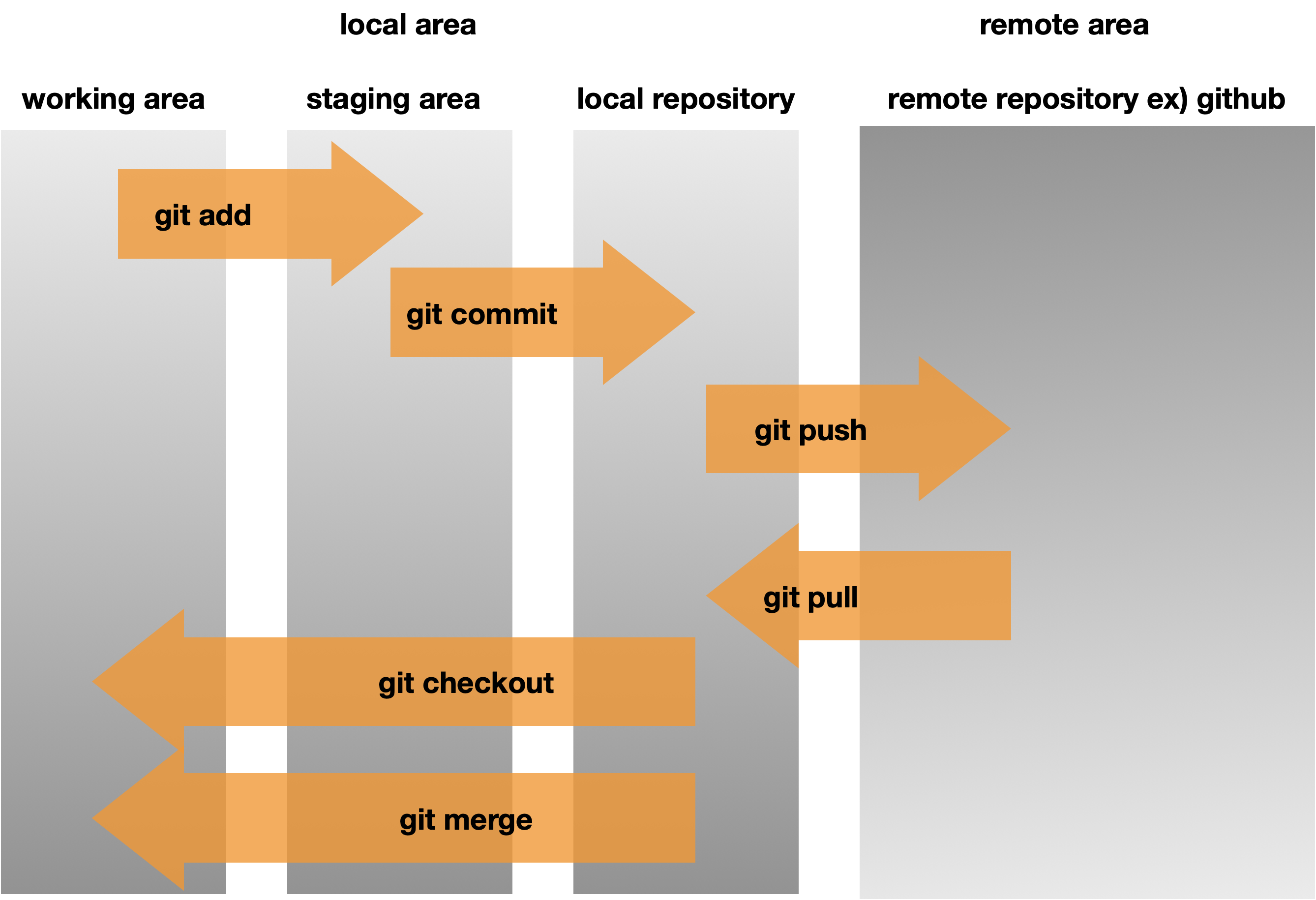 이렇게 보면 되는데, 하나의 공간을 올려가면서 commit에 대한 준비를 하고 그 다음 로컬 repository에 올라갔을 때, push를 할 수 있게 된다. 막연히 그냥 폴더 안에 있는 것을 push 해서 깃허브에 올릴 수 있는 것이 아니라는 것!