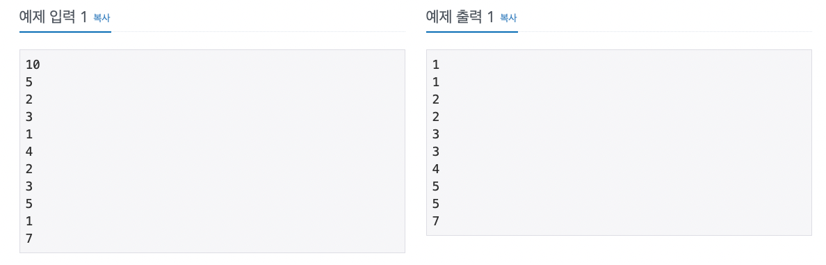 그러면 오름차순으로 그 원소의 값만큼 숫자가 출력될 것이고 정렬되어 출력이 된다.