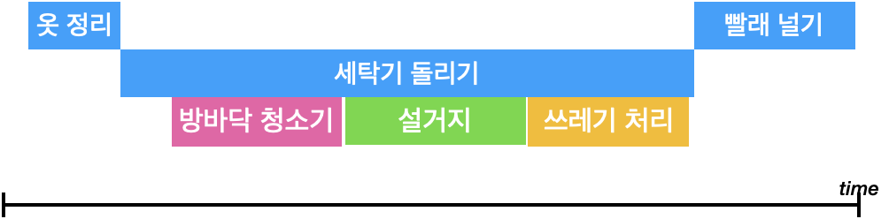 집안일을 빨리하고자 하는 사람은 다음과 같은 프로세스를 진행한다.