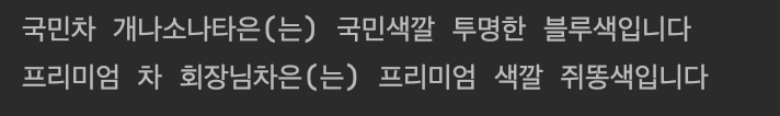 구분을 짓기 위해 쏘나타는 입력한 값에 더해 "국민 ~~"라는 수식어가 붙게 되고, G90은 "프리미엄 ~~"라는 수식어를 가지게 된다.