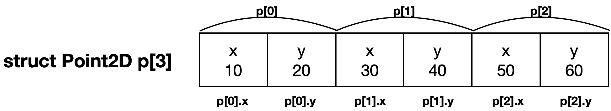 struct Point2D p[3]; // 크기가 3인 구조체 배열 생성