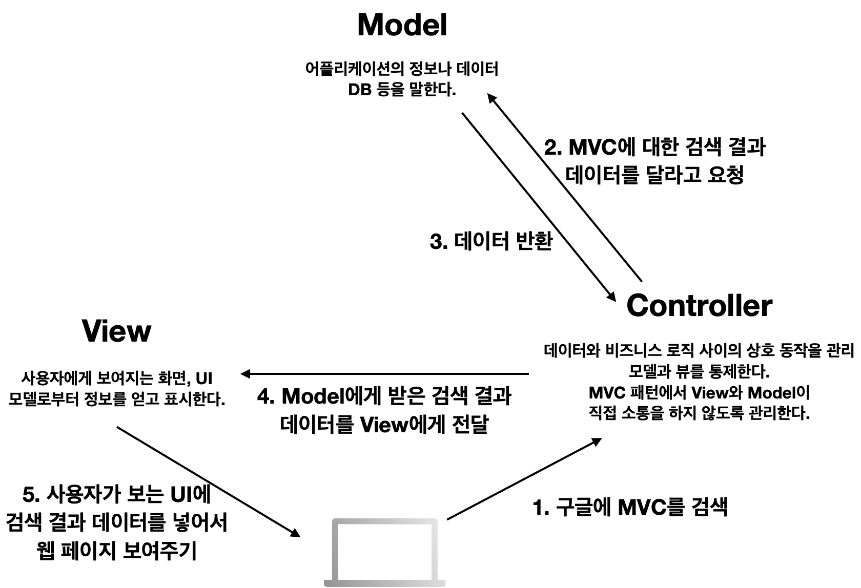 MVC를 간단히 보자면 위와 같은 구조도로 설명할 수 있다.