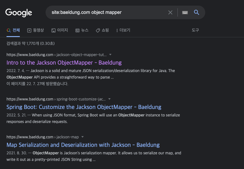 구글 검색 잘 하기(site: 검색 연산자 활용법, baeldung)