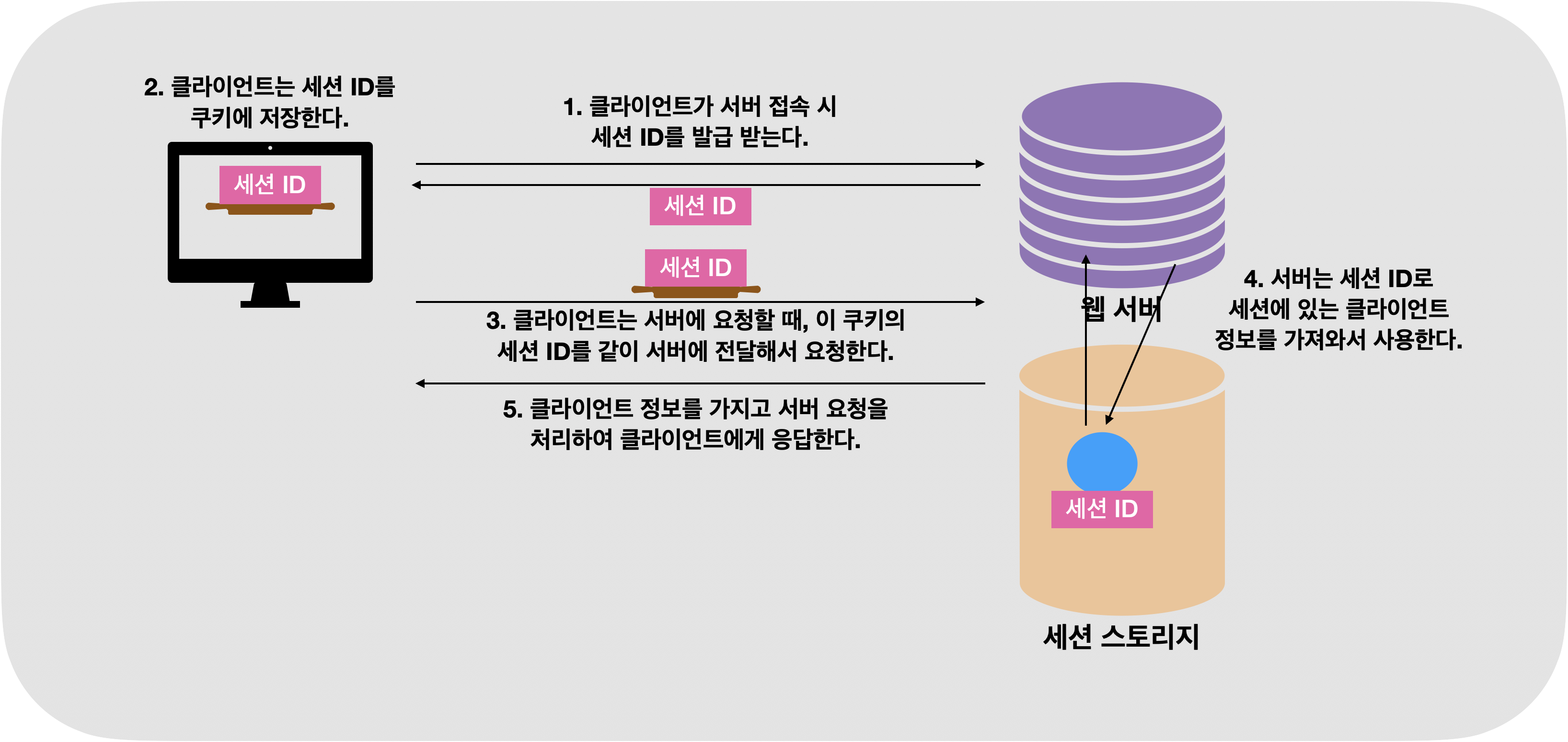 - 서버에서는 클라이언트를 구분하기 위해 세션 ID를 부여하며 웹 브라우저가 서버에 접속해서 브라우저를 종료할 때까지 인증 상태를 유지한다.