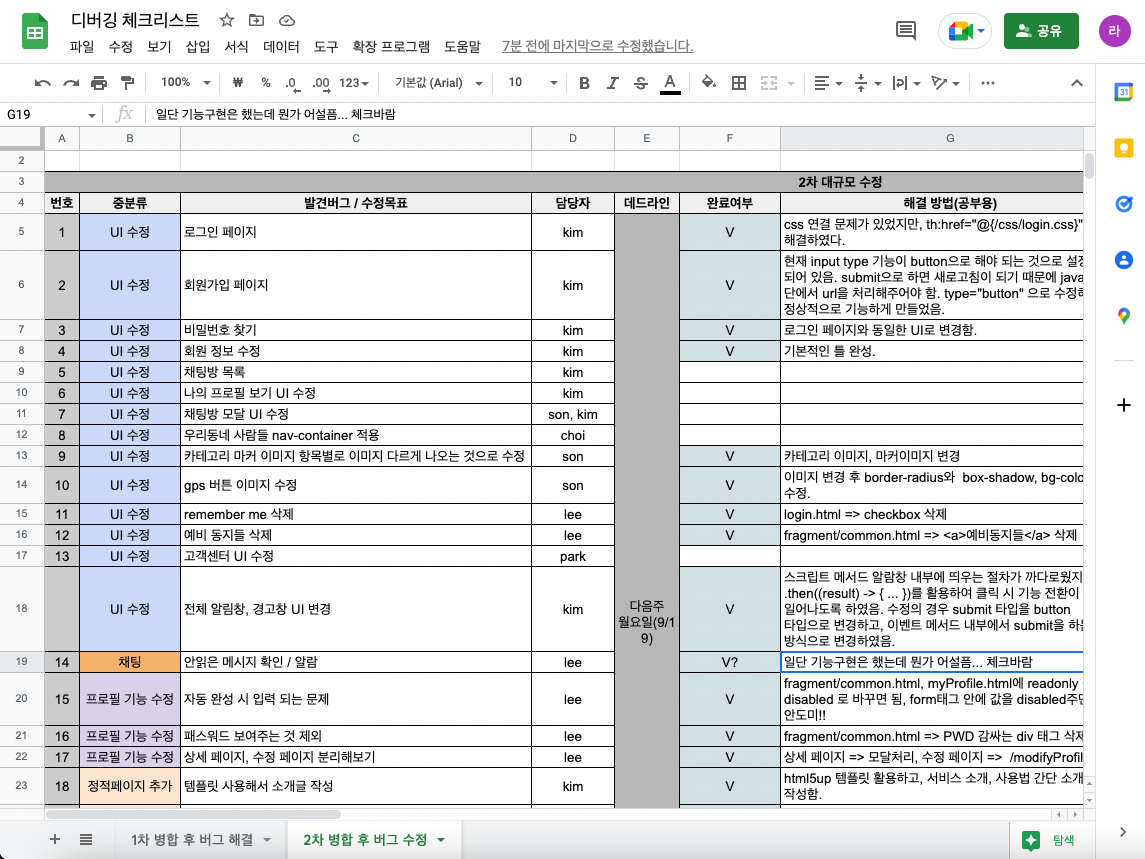최근에는 어설프게나마 버그 수정한 기록들을 리스트업 하고 이것들을 체크하는 방식으로 진행을 하고 있는데, 하나하나 블로그 기록으로 남기면 엄청 많은 분량인데, 미루고 미뤄서 결국 쌓인 부채가 이만저만...하다. 한 20개는 되는거 같다. 이 문제점들을 이제 하나씩 업로드 해봐야 겠다.
