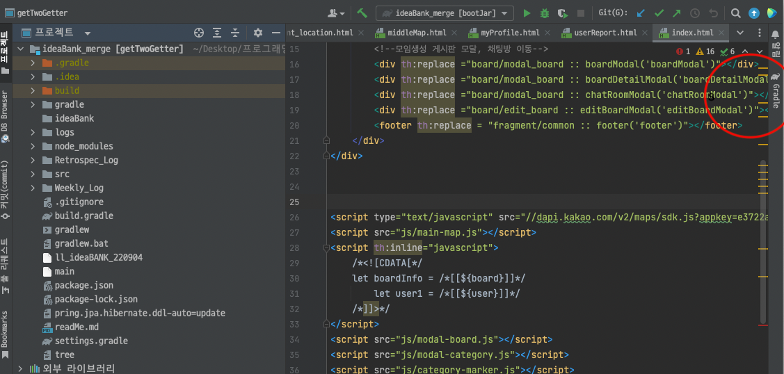 오른쪽을 보면 Gradle 탭이 있다. 클릭한다.