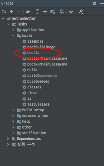 2) Task - build 디렉터리 안에 있는 bootJar를 더블 클릭한다.