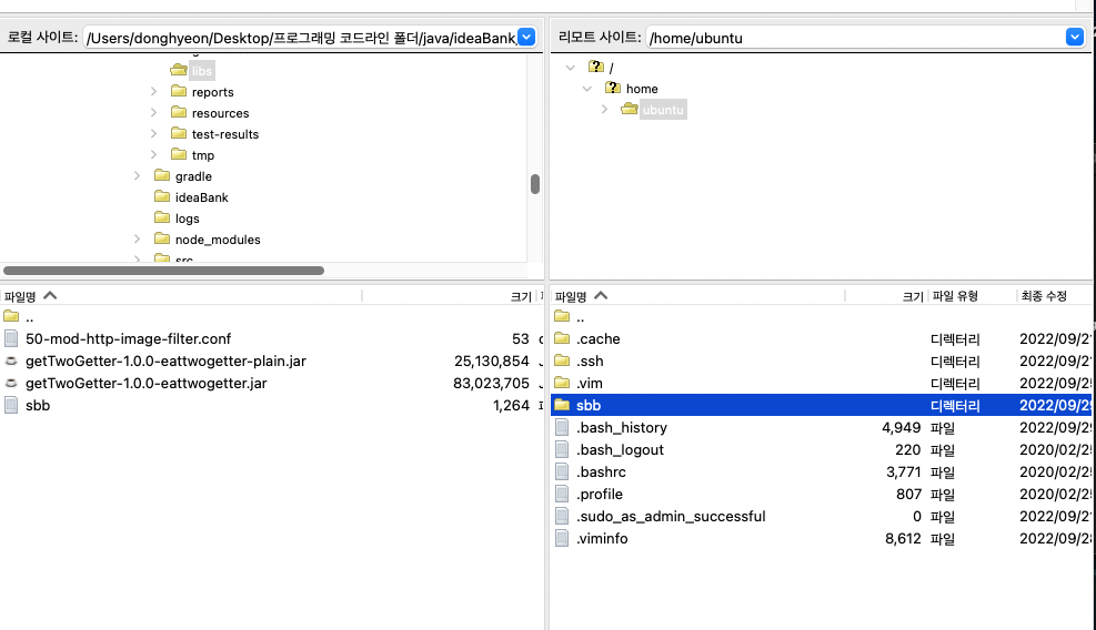 파일질라는 로컬 -> 서버 or 서버 -> 로컬로 파일을 전송하기 쉽게 도와주는 하나의 툴이다.