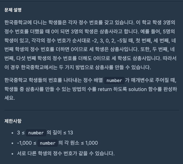 [Swift] 프로그래머스 삼총사(lv. 1)