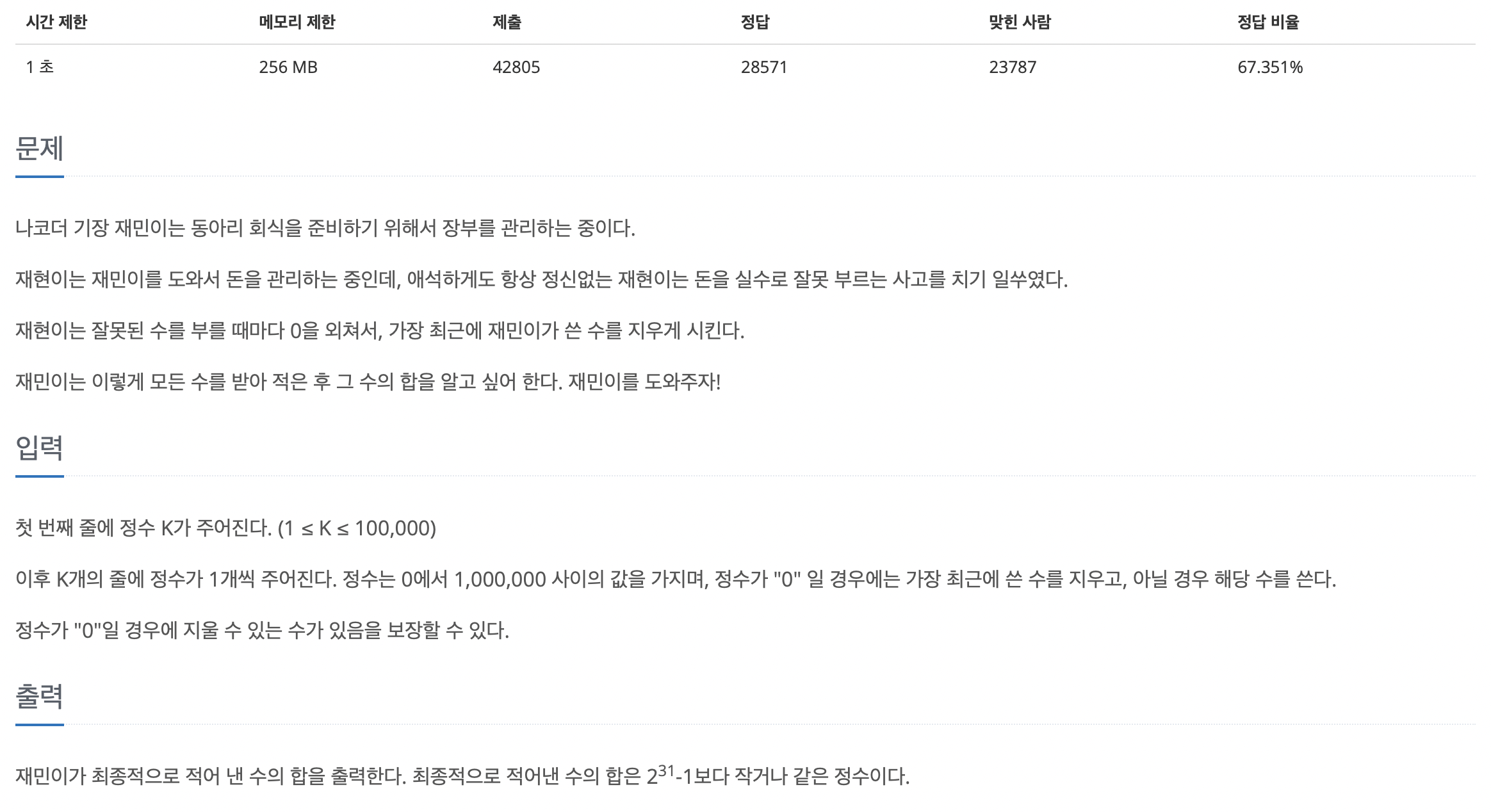 문제 10773. 제로