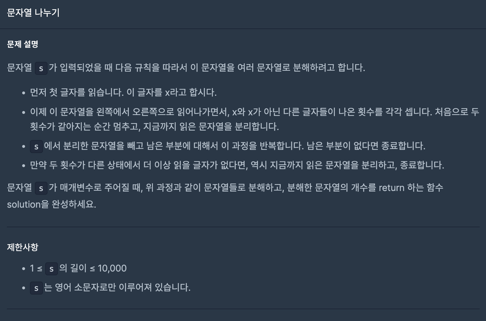 [Swift] 프로그래머스 문자열 나누기(lv. 1)