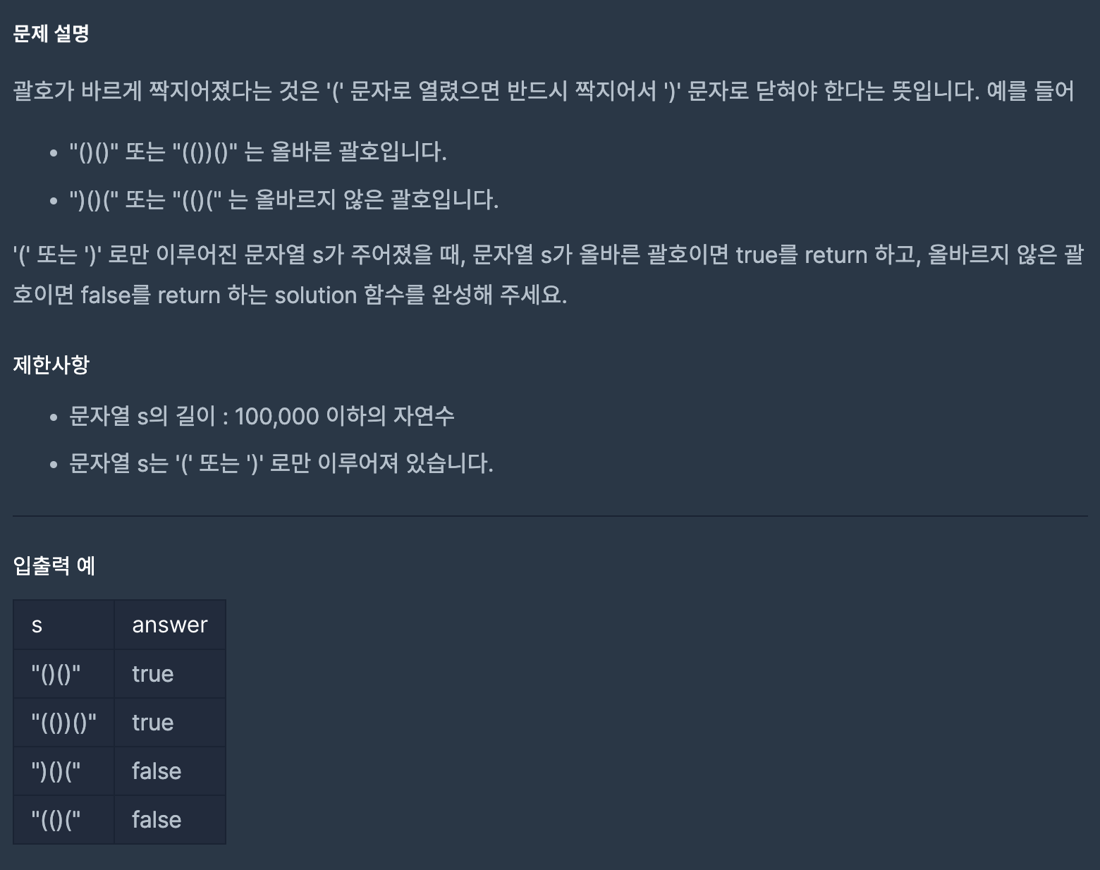 그런데 전체적으로 합쳐지면 ")("도 통과가 될 수도 있기 때문에 )) 와 같은 것을 방지하기 위해서 count가 음수가 되면 false를 리턴하게 하면 예외케이스를 처리할 수 있다. 그리고 count가 0이 아닌 경우, 즉 0 이상인 경우도 false로 처리해야 하기 때문에 마지막 리턴문에서 삼항 연산자로 값을 한 번 더 구분해 주었다.