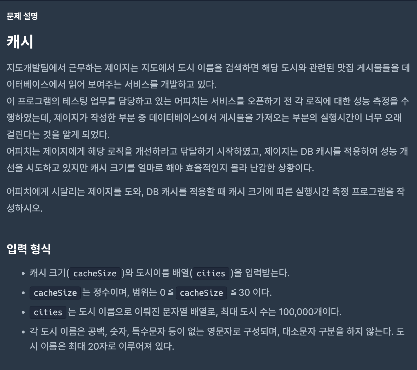 [Swift] 프로그래머스 [1차] 캐시(lv. 2)