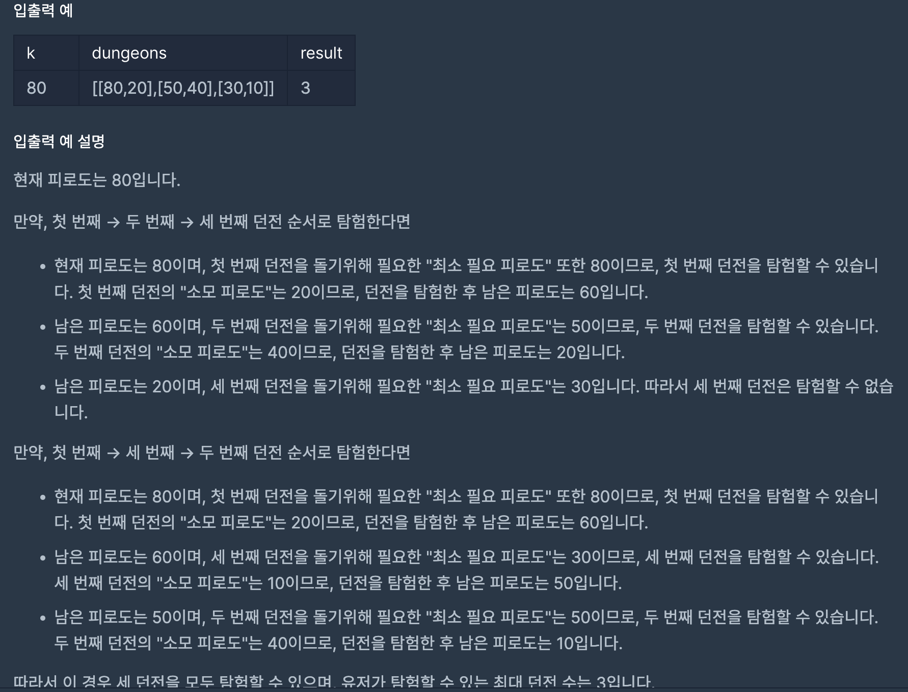 func solution(_ k:Int, _ dungeons:[[Int]]) -> Int {