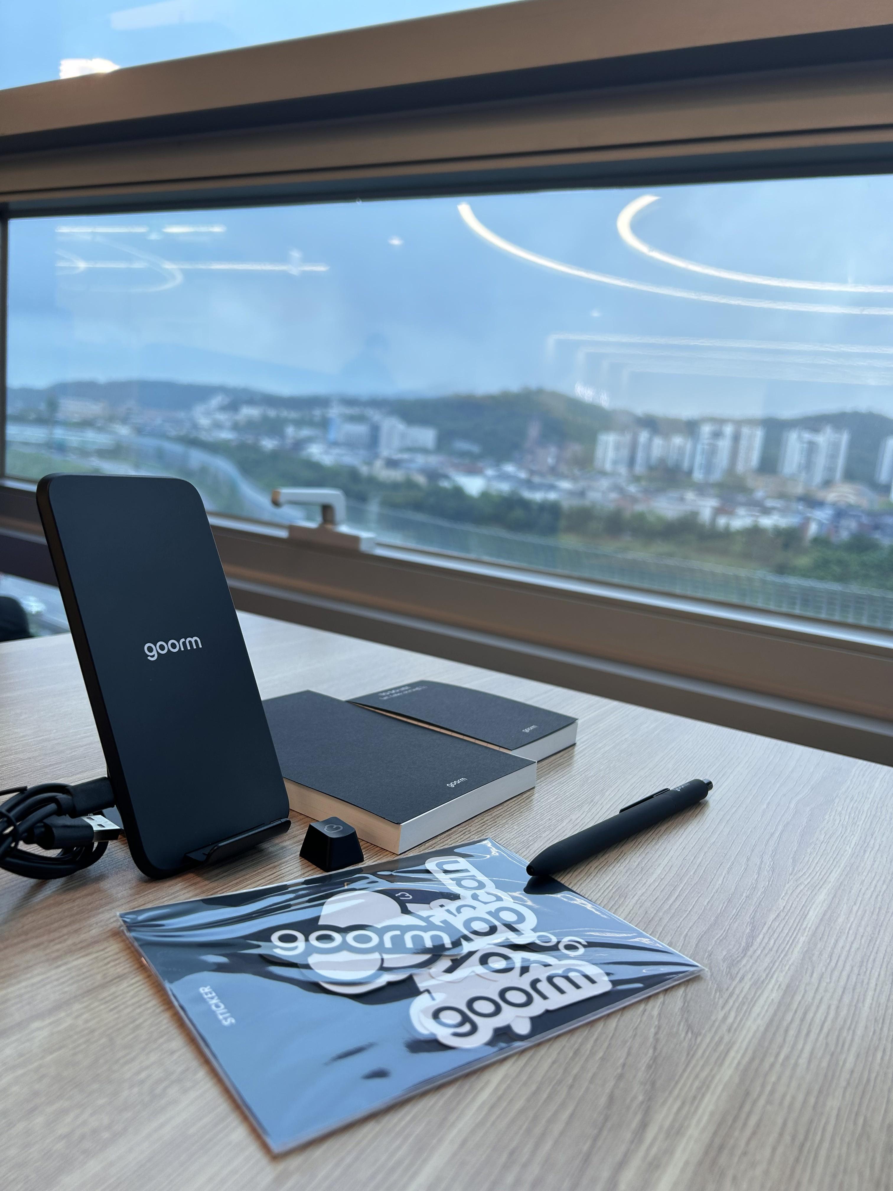 5월 27일, 비오는 날 판교에 위치한 어느 곳에 방문하게 되었다. Goorm이 있는 건물이었고 그 안에서 오리엔테이션을 진행했다. 방문을 했더니 이런 박스들을 주면서 반겨주었다. 안에는 노트와 무선충전기, 펜 등이 들어있었다.