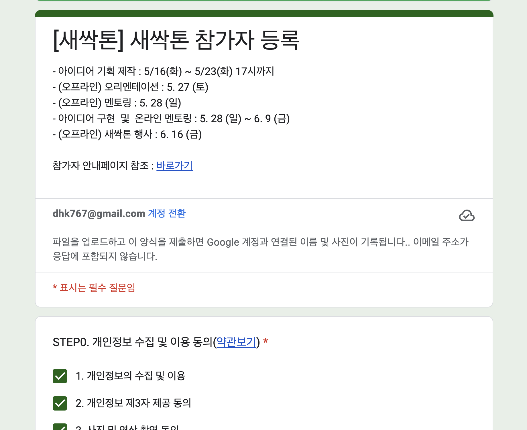 1차 지원은 통과하였으며, 대부분 보니, 주최 측에서 원하는 세부주제를 위주로 선정했다는 느낌을 살짝은 받을 수 있었다. 많은 정보가 입력되지 않은 상황에서 필터링을 거칠 수 있는 것은 오직 '주제'뿐이기 때문이다. 우리도 많은 설명을 쓰지 않았고, 무엇을 어떻게 해결해 볼 것이다 정도로만 썼으니... '세부 주제'로 선별한 것이라고 추측할 수 있었다.