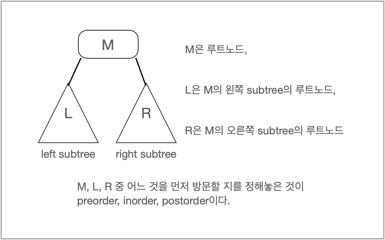 preorder(전위 순회) : M -> L -> R 순서로 순회