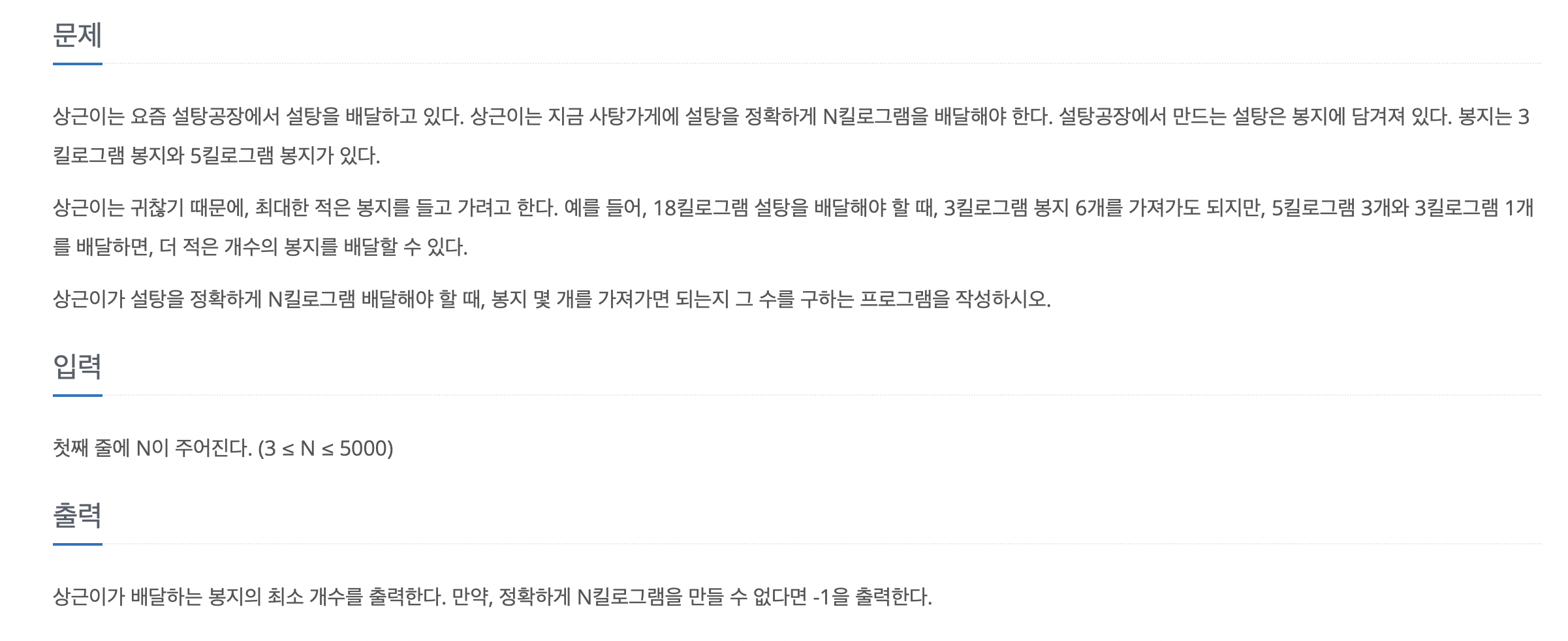 문제 2839. 설탕 배달